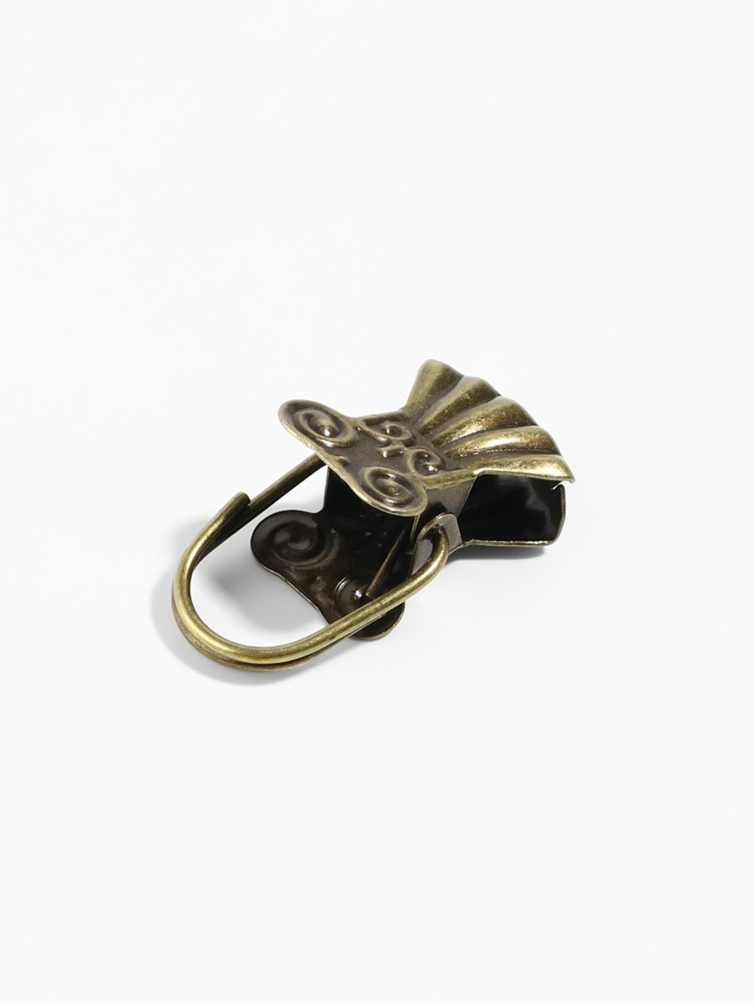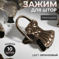 2303479 Зажим для штор «Ракушка», 30 × 15 мм, 10 шт, цвет бронзовый С помощью металлических зажимов вы надёжно зафиксируете шторы на карнизе. Аксессуар удобен тем, что при смене штор не нужно снимать кольца с карниза: достаточно отцепить зажимы.
