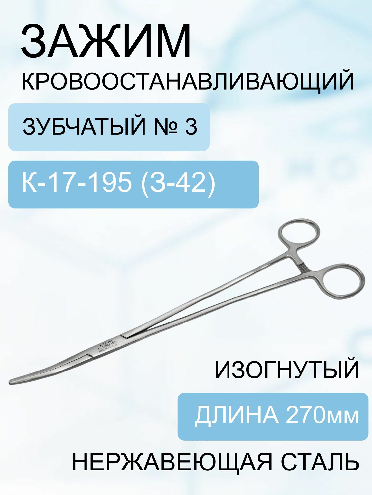 Зажим кровоостанавливающий зубчатый изогнутый №3, 270мм, Код 17-195 (з-42): сравнение цен, характеристики, фото, актуальное наличие и цены.