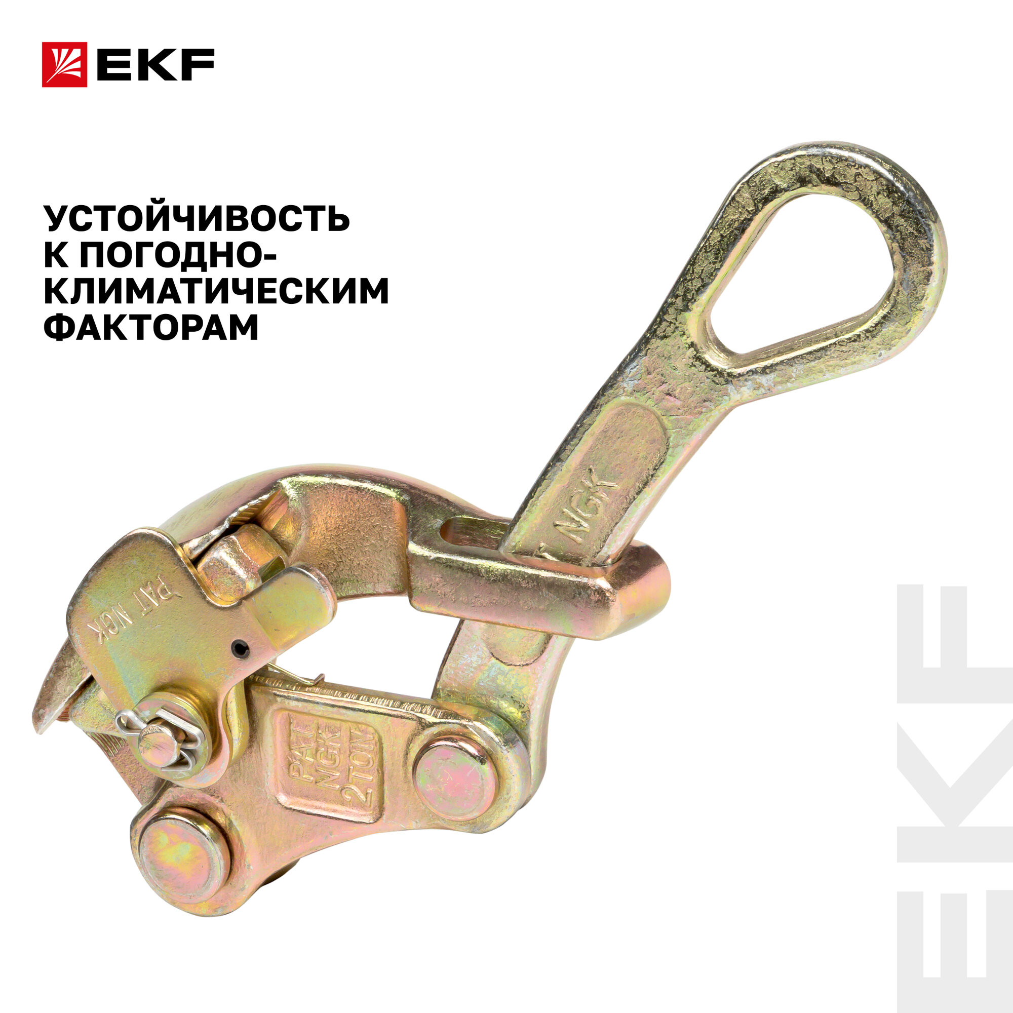 Зажим монтажный (лягушка) CT105.20 (3-22мм) EKF PROxima применяется при регулировке стрелы провеса на линиях СИП. Не повреждает изоляцию провода, может использоваться с оптоволоконным кабелем. Рычажное устройство преобразует усилие тяги в усилие захвата.