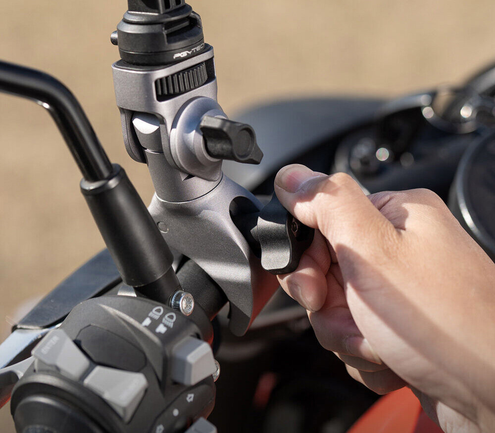 Super Clamp Mount можно также использовать с моноподом PGYTECH 96cm Extendable Selfie Stick или его аналогами длиной до 1 м. При установке на велосипед или мотоцикл рекомендуемая максимальная скорость составляет 80 км/ч для ровных асфальтовых дорог и 40 км/ч для грунтовки.