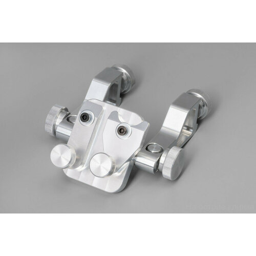 Малый универсальный столик оснащен двумя типами прижимов: укороченной 16мм губкой и Y-образным прижимом, они крепятся к основанию винтами на 3 мм. Для крепления прижимов к основанию предусмотрено три точки крепления, что позволяет затачивать инструмент с самой сложной геометрией лезвия. Прижимы используются как совместно, так и по одному. Основание столика - цельнофрезерованное, и не имеет никаких сварных швов или крепежей. Основание крепится к двум рамочным держателям с помощью винтов-барашков и прижимного цилиндра. Удобные широкие барашки позволяют крепко фиксировать положение столика. Универсальность столика дополняется тем, что основание можно перевернуть в держателях, существенно расширив диапазон применения данного зажима.