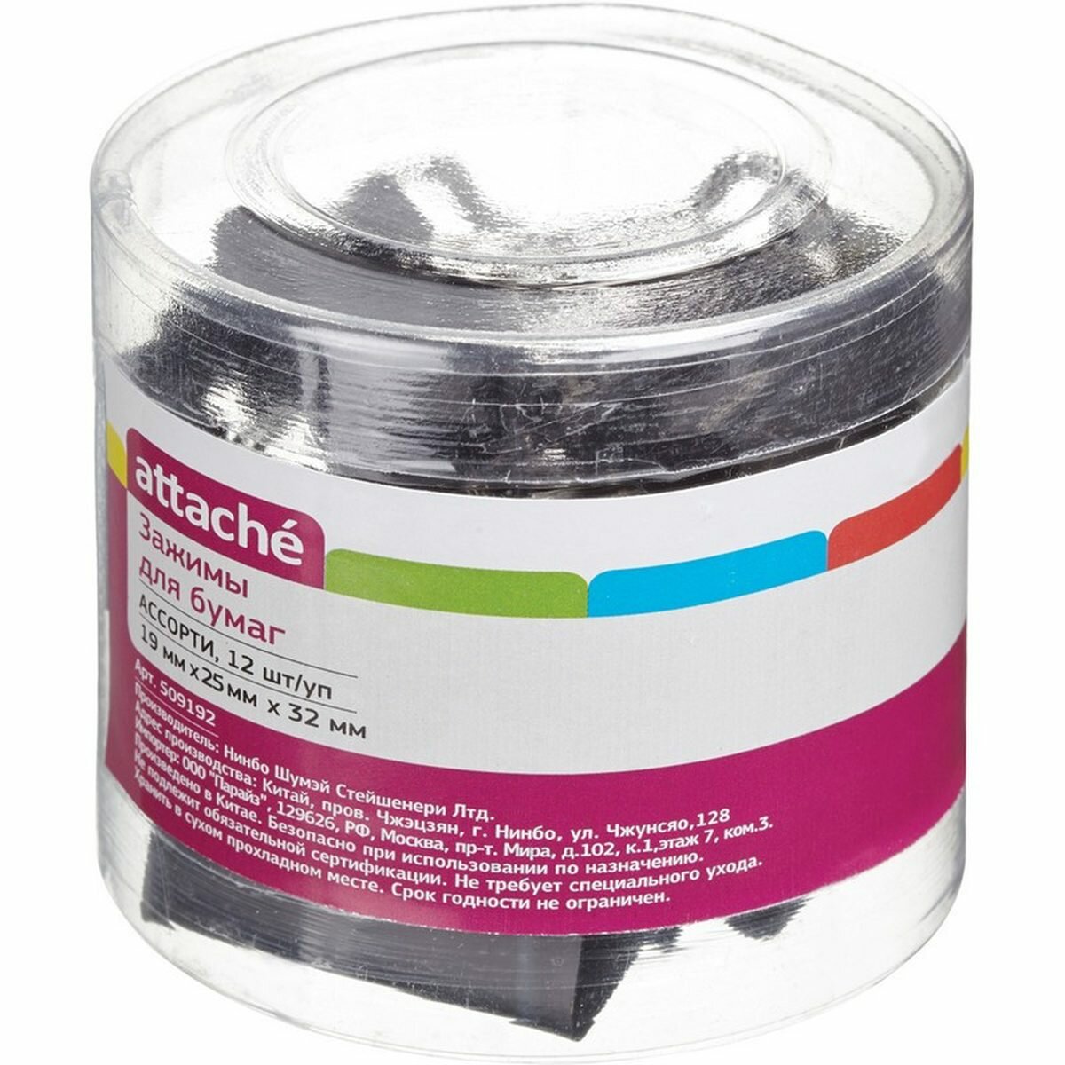 Зажимы для бумаг металлические Attache (19/25/32мм, до 140 листов, черные) 12шт, 12 уп.: сравнение цен, характеристики, фото, актуальное наличие и цены.