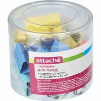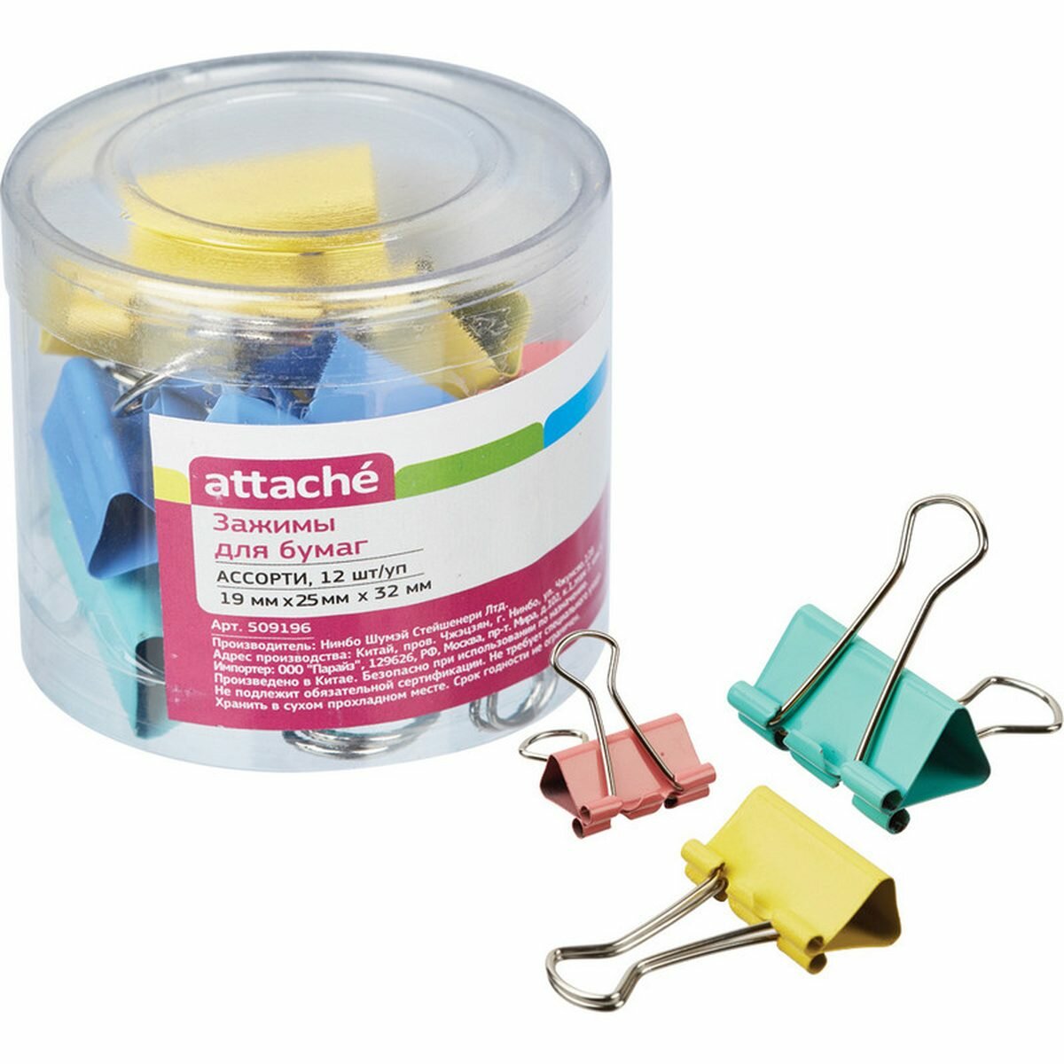 Зажимы для бумаг металлические Attache (19/25/32мм, до 140 листов, цветные) 12шт, 12 уп.: сравнение цен, характеристики, фото, актуальное наличие и цены.