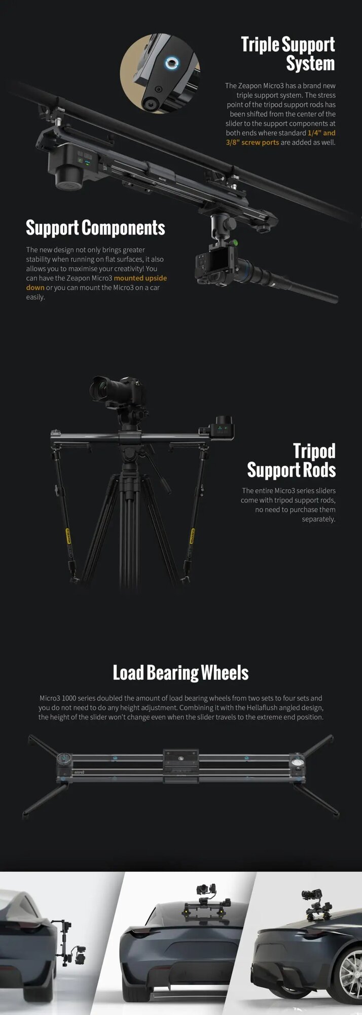 Купить ZEAPON Micro 3 моторизованный слайдер для камеры, E500 Electric с доставкой по всей России. ZEAPON Micro 3 моторизованный слайдер для камеры, E500 Electric: сравнение цен, характеристики, фото, актуальное наличие и цены.