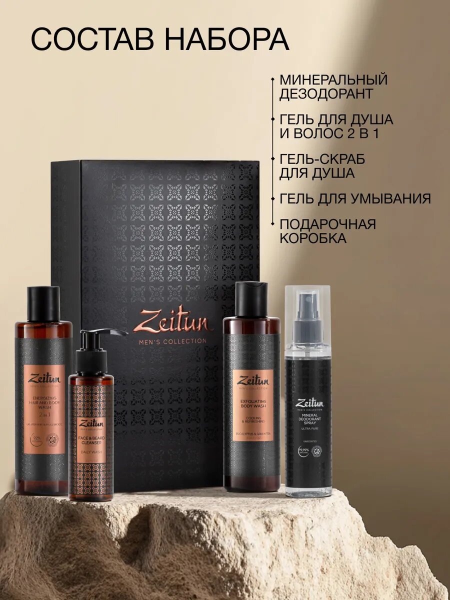 | Состав | Очищающий гель для волос и тела 2 в 1: Aqua, Sodium Coco-Sulfate, Cocamidopropyl Betaine, Glycerin, Polyquaternium-7, Hydroxyethyl Urea, Tetrasodium Glutamate Diacetate, Betaine, Panthenol, Aniba Rosaeodora (Rosewood) Wood Oil, Lavandula Angustifolia (Lavender) Oil, Pinus Sylvestris (Pine) Oil, Citrus Paradisi (Grapefruit) Peel Oil, Salvia Sclarea (Sage) Flower Oil, Citrus Aurantium Bergamia (Bergamot) Peel Oil, Cocamidopropyl Dimethylamine, Citric Acid, Ethylhexylglycerin, Tocopherol, Benzyl Alcohol.Гель-скраб для душа: Aqua, Sodium Coco-Sulfate, Pumice, Disodium Cocoamphodiacetate, Glycerin, Acrylates Copolymer, Camellia Sinensis (Tea) Leaf Extract, Polyquaternium-7, Tetrasodium Glutamate Diacetate, Eucalyptus Citriodora (Eucalyptus) Oil, Citrus Aurantium (Neroli) Flower Oil, Mentha Piperita (Peppermint) Oil, Methyl Diisopropyl Propionamide, Ethylhexylglycerin, Tocopherol, Citric Acid, Benzyl Alcohol, Parfum (Fragrance).Гель для умывания: Aqua, Sodium Coco-Sulfate, Hydroxyethyl Urea, Cocamidopropyl Betaine, Glycerin, Disodium Cocoamphodiacetate, Urea, Sucrose, Inulin, Allantoin, Malic Acid, Coco-Glucoside, Glyceryl Oleate, Citric Acid, Methyl Diisopropyl Propionamide, Sea Salt, Glucose, Sorbitol, Sodium Glutamate, Sodium PCA, Glycine, Lactic Acid, Hydrolyzed Wheat Protein, Panthenol, Centella Asiatica Extract, Aloe Barbadensis Extract, Salix Alba (Willow) Bark Extract, Saccharide Isomerate, Sodium Citrate, Cocamidopropyl Dimethylamine, Tetrasodium Glutamate Diacetate, Gluconolactone, Sodium Benzoate, Calcium Gluconate, Parfum (Fragrance).Дезодорант: Aqua (Water), Ammonium Alum, Colloidal Silver, Ethylhexylglycerin, Tocopherol, Benzyl Alcohol. |