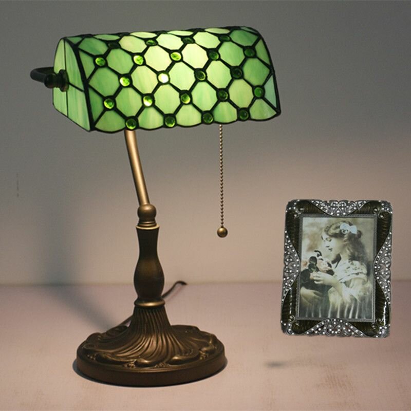 Зеленая лампа настольная ретро банкира, стеклянный абажур классический, для кабинета, светильник настольный, прикроватный, винтаж, HONS MEDICAL