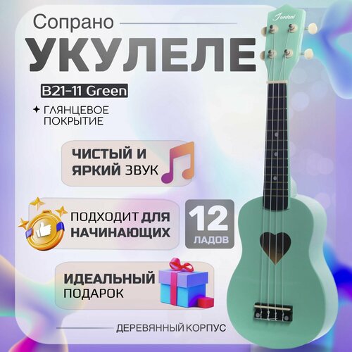 Укулеле сопрано "Сердце" от Jordani — это идеальный инструмент для тех, кто ценит сочетание стильного дизайна и качественного звучания. Этот ярко-желтый струнный инструмент привлекает внимание с первого взгляда благодаря уникальной форме с вырезом в виде сердца. Изготовленная из высококачественных материалов, укулеле гарантирует долговечность и устойчивость к износу, что делает её прекрасным выбором как для новичков, так и для опытных музыкантов. Компактный размер и лёгкость обеспечивают комфорт во время игры и транспортировки, позволяя брать инструмент с собой повсюду — на природу, вечеринки или просто для репетиций дома. Укулеле "Сердце" от Jordani звучит великолепно благодаря тщательно продуманной конструкции и точной настройке, что позволяет вам наслаждаться чистыми и мелодичными аккордами. Этот инструмент идеально подходит для исполнения различных стилей музыки, будь то гавайские мелодии, поп-музыка или джаз. Наполните своё исполнение позитивом и яркими эмоциями с помощью этого стильного и надёжного музыкального инструмента, который станет вашей верной спутницей в мире музыки.