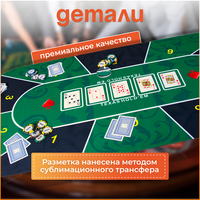 Плотная резина, используемая в производстве сукна, обеспечивает его долговечность и надежность. Специальное покрытие позволяет удобно раздавать карты, предотвращая их стирание, погнутость и загрязнение.