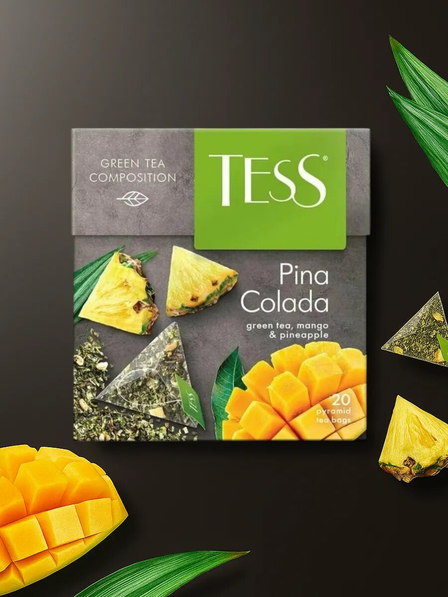 Зеленый чай с манго и ананасом Tess Pina Colada в пирамидках: сравнение цен, характеристики, фото, актуальное наличие и цены.