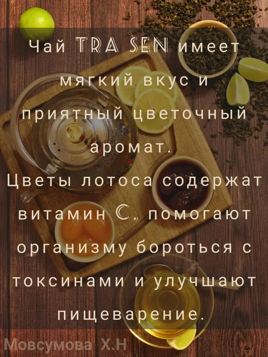 Зеленый чай улун с цветами лотоса Вьетнамский. Высокогорный вьетнамский витаминизированный зеленый чай улун с цветками лотоса. Сложно преувеличить полезность чая с лотосом Tra Sen Tea. На Востоке считается, что всего лишь одна чашка вьетнамского чая с лотосом в день развеивает усталость, снижает аллергенность, помогает лучше переносить летнюю жару. Улун - это зеленый чай, прошедший полуферментированную обработку. Такая технология обработки наделяет чай одновременно горьким и сладким вкусом с прохладой. Продукт имеет характерную круглую форму. Улун обладает очень стойким ароматом и теплым вкусом, при заваривании вода приобретает желто-зеленый цвет. Процесс полуферментации помогает чаю сохранить содержание полифенолов, предотвращая свободные радикалы и снижая риск возникновения болезней. Можно отметить также: баланс плохого и хорошего холестерина смещается в сторону последнего; нормализацию состава крови в части содержания жиров и сахара; очищающее действие напитка благотворно сказывается на кровеносно-сосудистой системе; повышение иммунитета, который определяет общую сопротивляемость организма инфекциям и вирусам; стабилизацию артериального давления; переносить летний зной. Особенно ценят вьетнамский Тра Сен Тиа женщины. За способность улучшать качество кожи; Укрепление костной основы; Благотворное влияние на весь пищеварительный тракт. Наконец, напиток незаменим, когда речь идёт о похудении - листья лотоса даже добавляют в специализированные препараты - например в таблетки Giam Can PV. Пара чашек приятного на вкус чая в день станет отличным средством для движения веса к желаемым пределам. Чай с лотосом зеленый имеет мягкий вкус и приятный цветочный аромат. Таким образом, в первом глотке мы чувствуем свежие, солнечные, цветочные ноты, а уже во втором, прислушавшись, начинаем различать, специевость, пряность и молочность фона. В жару охлажденный чай с лотосом поможет Вам освежиться и утолить жажду. Чай возвышает вкус и помогает достичь утонченности воли. Купить Вьетнамский зеленый высокогорный крупнолистовой чай в магазине Milisa Tea&Coffee Вы можете в любое удобное для Вас время. Найти наш чай можно: чай рассыпной, чай для купажа, чай для купажирования, чай развесной, чай листовой, чай купить, чай с доставкой, чай на дом, элитный чай, крупнолистовой чай, крупный лист, чай зеленый, настоящий чай, подарочный чай, купажированный чай, бодрящий чай, тонизирующий чай, расслабляющий чай, чай улун