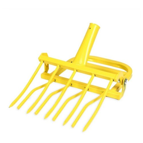 Инструмент состоит из качающегося рыхлителя на шарнире, оборудованного педалью для упора ноги, и вил со стальными зубцами.