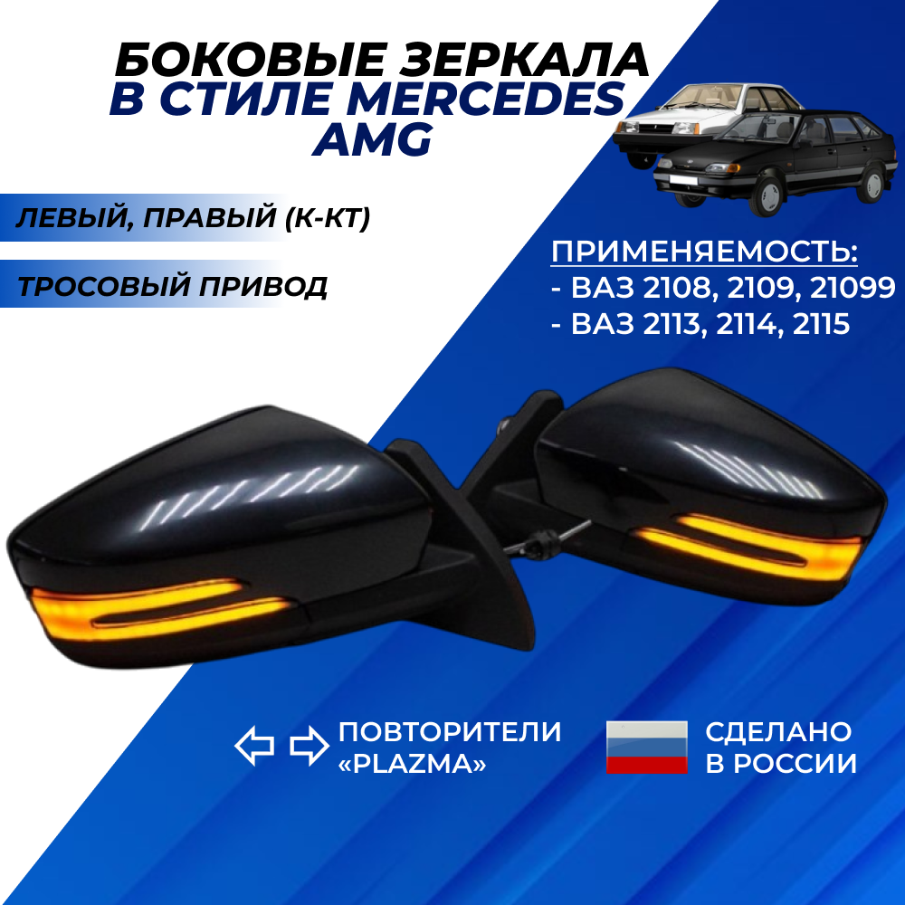 Зеркала ВАЗ 2114 боковые механические неокрашенные стиле Mercedes AMG c повторителями "Плазма" на ВАЗ 2108-09, 2113-14-15 устанавливаются без дополнительных доработок!