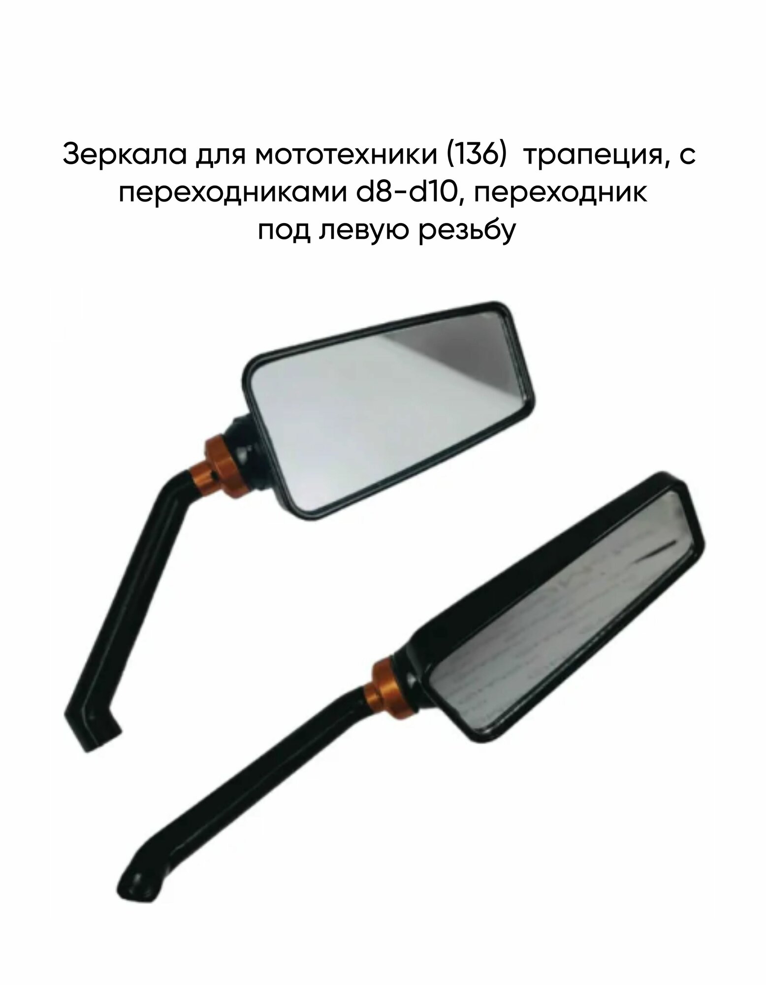 Зеркала для мототехники (136) трапеция, с переходниками d8-d10, переходник под левую резьбу: сравнение цен, характеристики, фото, актуальное наличие и цены.