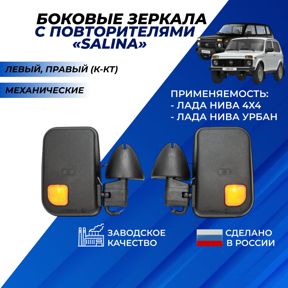 Цена указана за Зеркала лопухи на Ниву с повторителями боковые, антиблик белый хром Солина / Salina 4x4 левое правое зеркало Нива ВАЗ 21213 комплект