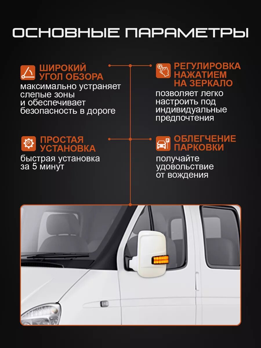 Представляем вашему вниманию боковые зеркала с бегущими тонированными повторителями в стиле лексус и подогревом в белом цвете нового образца для автомобилей марки Газель 3302, Газель Бизнес, Соболь, Баргузин. Данный товар поставляется комплектом из двух штук: правого и левого зеркал. Обратите внимание, что они не подойдут для моделей Некст. Зеркала оснащены ручным приводом и функцией подогрева, что обеспечит комфортное использование даже в холодное время года. Кроме того, они имеют повторитель поворотного сигнала (поворотник), который улучшит видимость и безопасность на дороге. Пожалуйста, учтите, что в комплект не входят входят заглушки, болты, дюралевые пластины. Не упустите возможность улучшить внешний вид и функциональность вашего автомобиля с помощью наших зеркал. Корпус зеркал выполнен из качественных материалов, что гарантирует их долговечность и надежность. надежность. Приобретая эти зеркала, вы делаете правильный выбор в пользу качества и безопасности. Заказывайте прямо сейчас и наслаждайтесь комфортной и безопасной. Установка зеркал - в штатные места, не требует доработок.