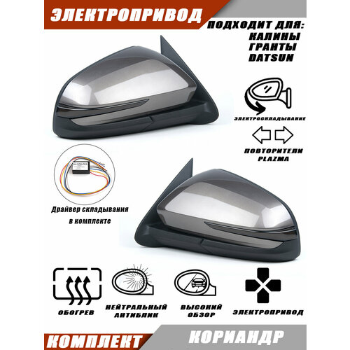 Зеркала на Гранту с электроскладыванием в корпусе Веста, электропривод, обогрев, повторитель поворота, цвет Кориандр 790, Solina