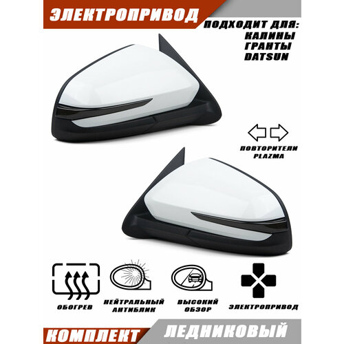 Комплект боковых зеркал заднего вида, с обогревом и повторителем поворота Plazma, для автомобилей Гранта и Калина. Зеркала изготовлены в корпусе Vesta 2181 (версия Lite), Solina.