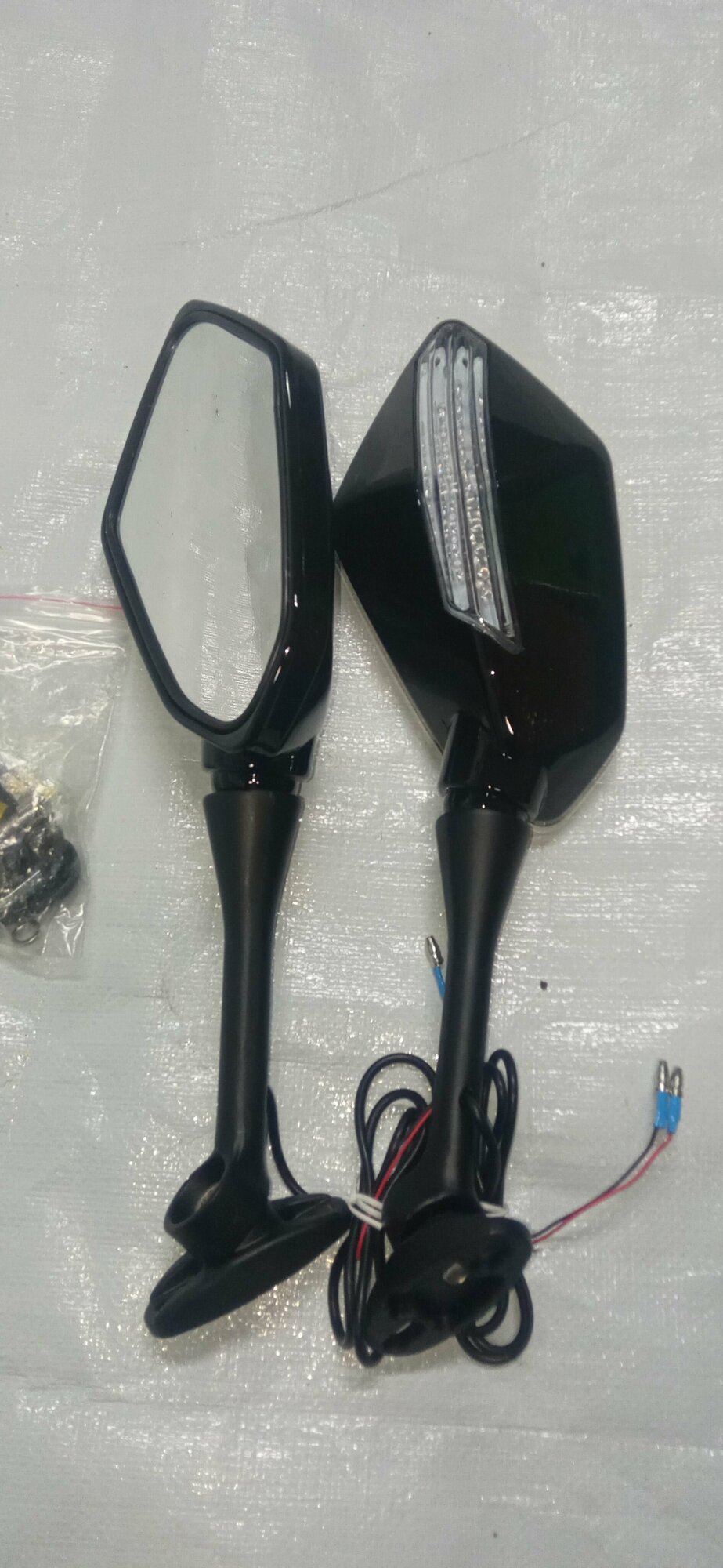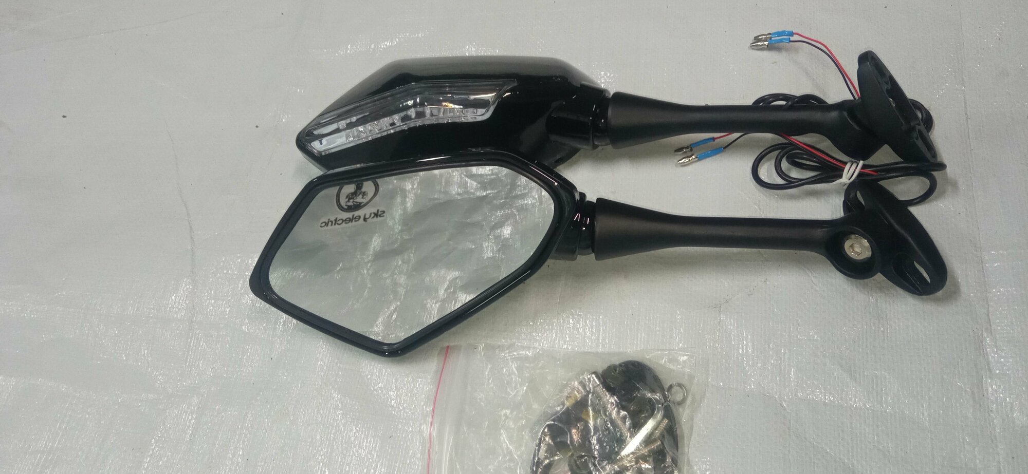 Зеркала универсальные с поворотниками, для мото Yamaha, Kawasaki, Ducati panigale, bmw rr. Подходит для мотоциклов мопедов скутеров. Расстояние между крепёжными отверстиями 4.5см по центрам.