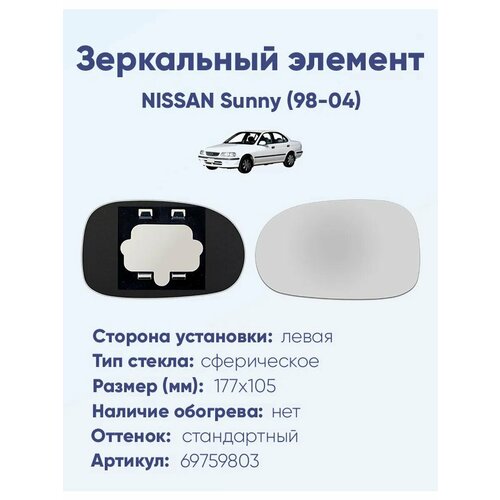 Купить Зеркальный элемент левый NISSAN Sunny (98-04) сфера нейтральный без обогрева с доставкой по всей России. Зеркальный элемент левый NISSAN Sunny (98-04) сфера нейтральный без обогрева: сравнение цен, характеристики, фото, актуальное наличие и цены.
