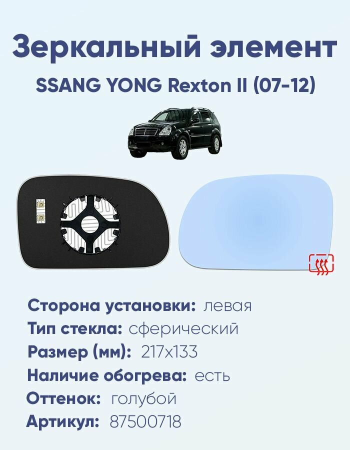 Зеркальный элемент левый SSANG YONG Rexton II (07-12) сфера голубой с обогревом: сравнение цен, характеристики, фото, актуальное наличие и цены.