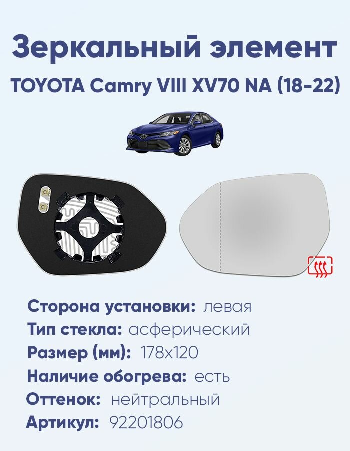 Зеркальный элемент левый TOYOTA Camry VIII XV70 NA (18-22) асферика нейтральный с обогревом: сравнение цен, характеристики, фото, актуальное наличие и цены.