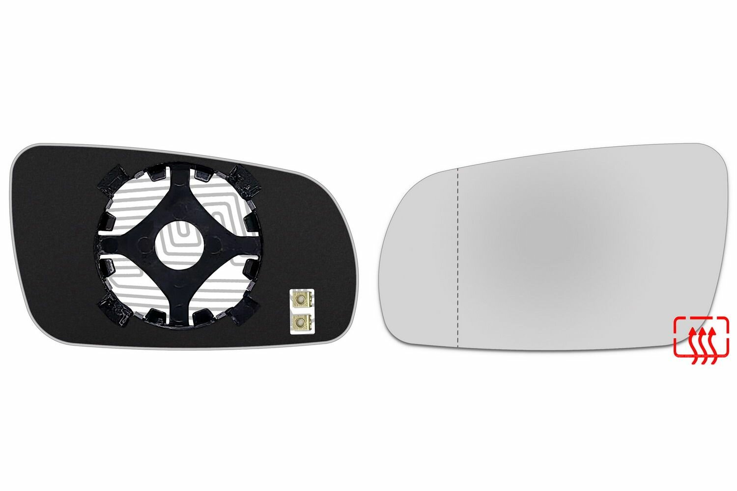 Зеркальный элемент для автомобилей VOLKSWAGEN Passat с 1997 по 2001 год выпуска для левой (водительской) стороны с антибликовым асферическим стеклом нейтрального тона и системой обогрева. Для информации - габаритный размер зеркального элемента 103х174 мм.