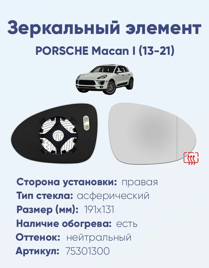 Зеркальный элемент правый PORSCHE Macan I (13-21) асферика нейтральный с обогревом: сравнение цен, характеристики, фото, актуальное наличие и цены.
