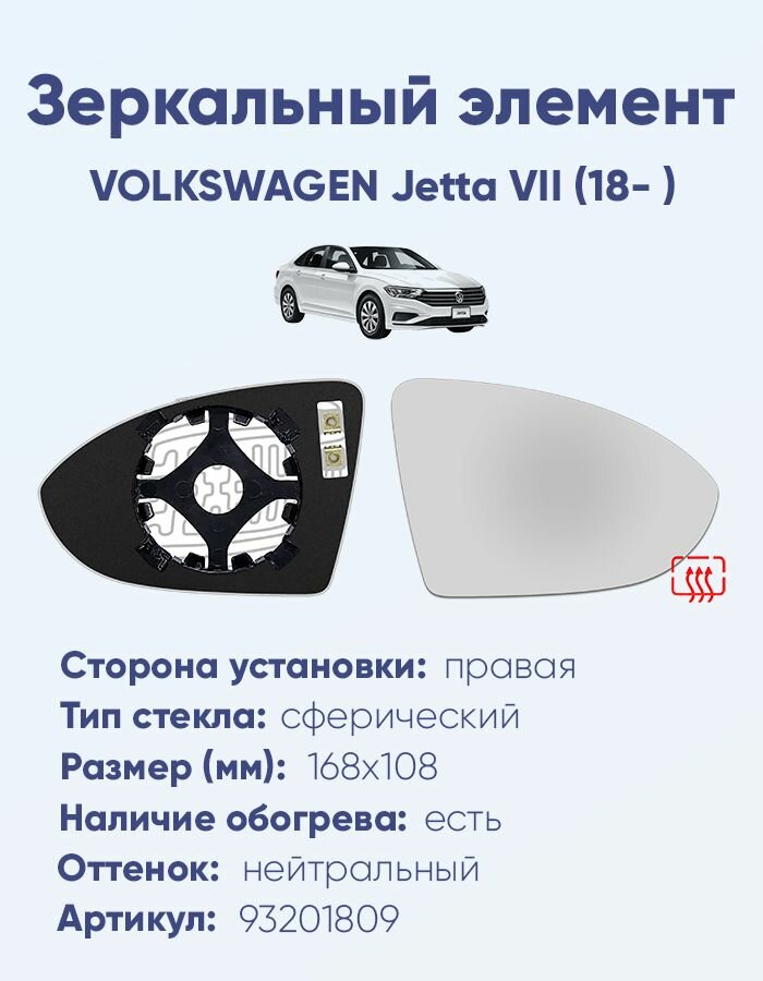 Зеркальный элемент правый VOLKSWAGEN Jetta VII (18- ) сфера нейтральный с обогревом: сравнение цен, характеристики, фото, актуальное наличие и цены.