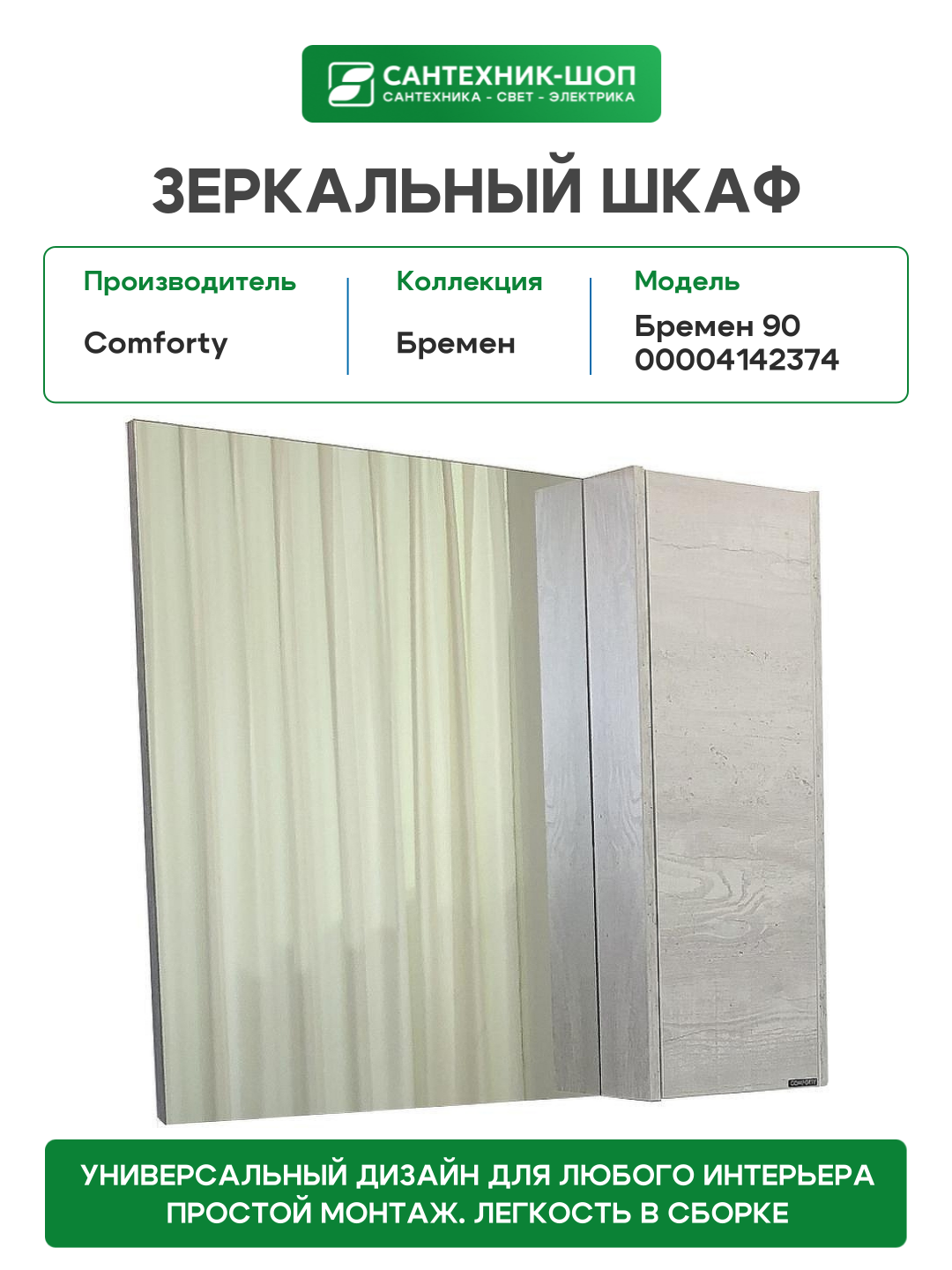 Купить Зеркальный шкаф Comforty Бремен 90 00004142374 Дуб белый МДФ / ЛДСП, стекло с доставкой по всей России. Зеркальный шкаф Comforty Бремен 90 00004142374 Дуб белый МДФ / ЛДСП, стекло: сравнение цен, характеристики, фото, актуальное наличие и цены.