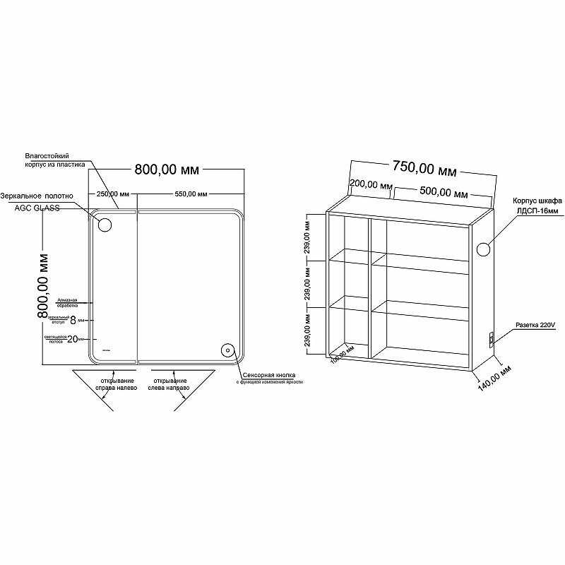 Шкаф-зеркало Адель 80 см - функциональное и практичное исполнение: универсальный белый цвет и оригинальная форма зеркала подойдет к любому интерьеру ванной комнаты. Зеркальная дверь с LED подсветкой и сенсорным выключателем создаст уют и дополнительное освещение, а пространство за распашной правой зеркальной дверцей, оснащенной механизмом плавного закрывания, станет удобным местом для хранения принадлежностей. Зеркальный шкаф выполнен из глянцевого влагостойкого ЛДСП, устойчивой к механическим воздействиям, перепадам температур и высокой влажности. Подвесы для установки шкафа - в комплекте.