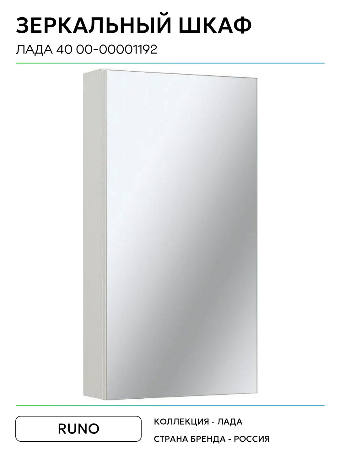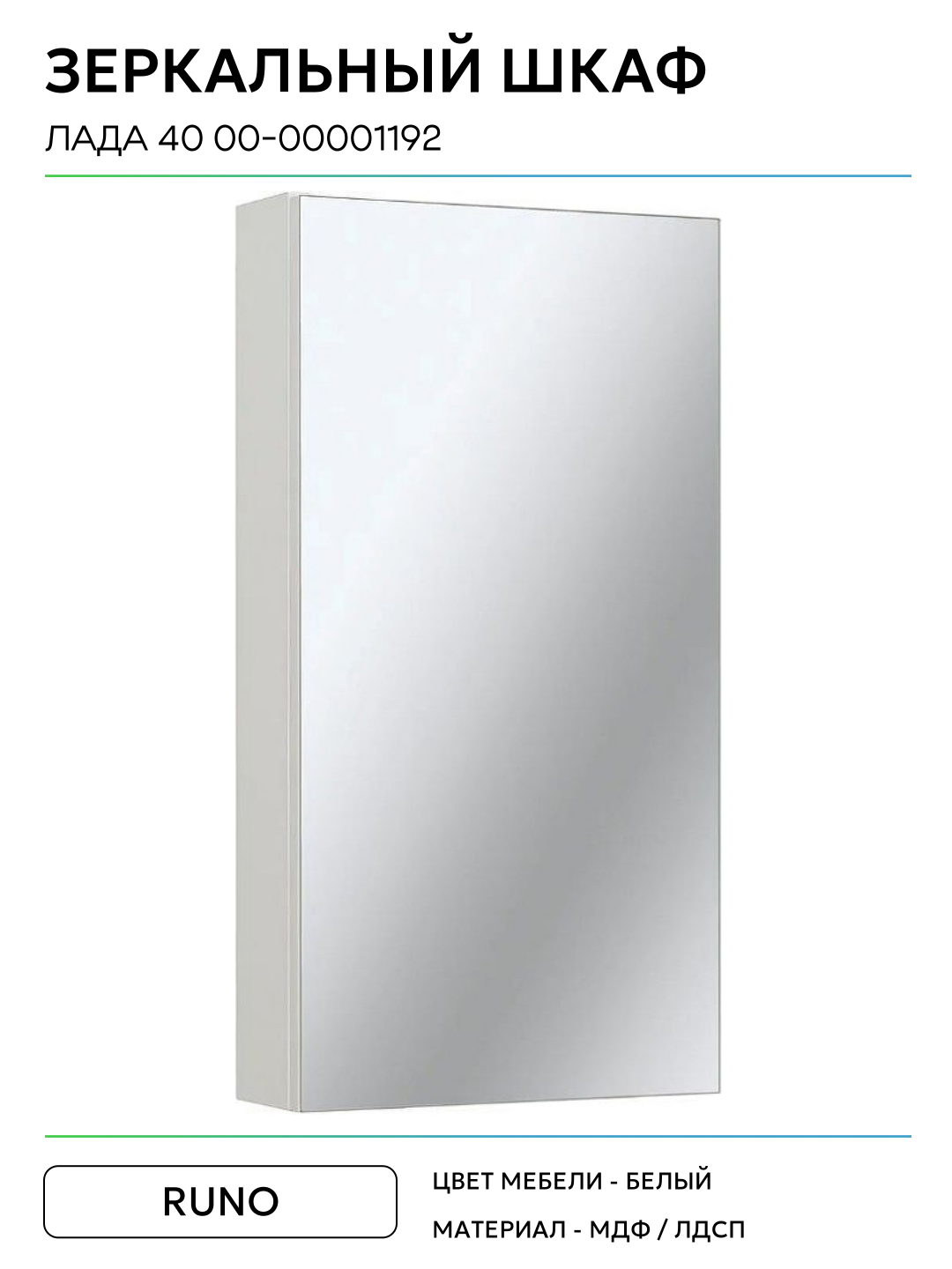 Купить Зеркальный шкаф Runo Лада 40 00-00001192 Белый МДФ / ЛДСП белый Россия с доставкой по всей России. Зеркальный шкаф Runo Лада 40 00-00001192 Белый МДФ / ЛДСП белый Россия: сравнение цен, характеристики, фото, актуальное наличие и цены.