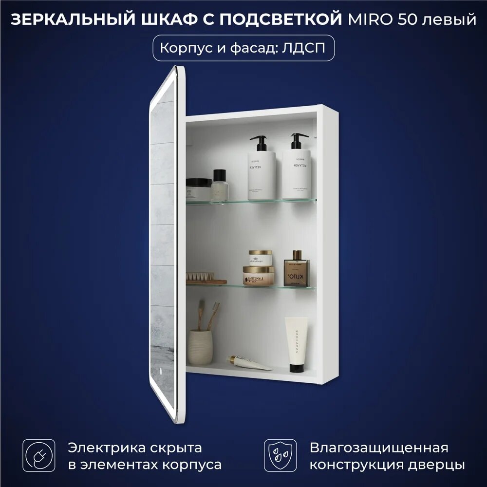 Зеркальный шкаф с подсветкой ITANA Miro 50 500х150х790 левое Белый: сравнение цен, характеристики, фото, актуальное наличие и цены.