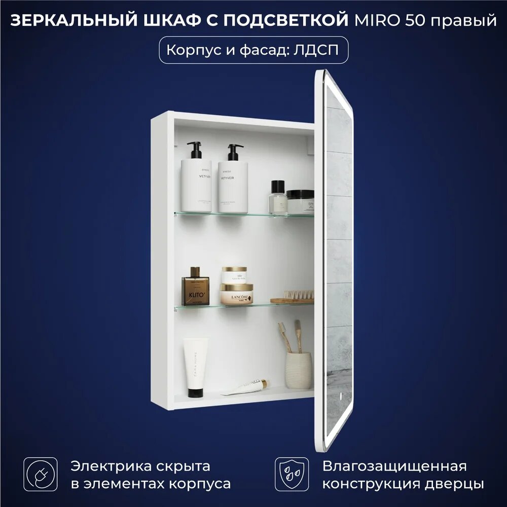 Купить Зеркальный шкаф с подсветкой ITANA Miro 50 500х150х790 правое Белый с доставкой по всей России.