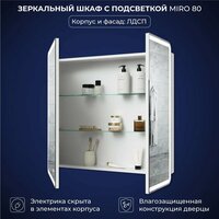 Зеркальный шкаф с подсветкой Итана Miro 80 - это идеальное решение для вашей ванной комнаты. Этот элегантный и функциональный шкаф, с размерами 800х150х790 мм, представляет собой зеркало с подсветкой, которое не только украсит интерьер, но и добавит практичности вашему утреннему и вечернему уходу за собой. Зеркало в ванную комнату оборудовано современной энергосберегающей подсветкой, которая обеспечивает яркий и равномерный свет, делая ваши утренние процедуры комфортными и удобными. Мягкое освещение идеально подходит для нанесения макияжа, бритья и других гигиенических процедур. Основное преимущество этого зеркального шкафа с подсветкой в ванную - это его продуманная конструкция. Шкафчик имеет две дверки, что обеспечивает удобный доступ ко всем необходимым вещам, а вместительные полки внутри шкафа позволят хранить все необходимые аксессуары и косметические средства в порядке. Белый цвет шкафа гармонично впишется в любой интерьер ванной комнаты, создавая атмосферу чистоты и уюта. Зеркальный шкаф Итана Miro 80 изготовлен из высококачественных материалов. Удобная система крепления позволяет быстро и надежно установить шкаф на стену. Если вы ищете стильное и функциональное зеркало с подсветкой для своей ванной комнаты, зеркальный шкаф с подсветкой Итана Miro 80 - это то, что вам нужно. Он сочетает в себе современные технологии, высокое качество и утонченный дизайн, делая ваше утреннее и вечернее времяпрепровождение еще приятнее. Преобразите свою ванную комнату с этим великолепным зеркальным шкафом.