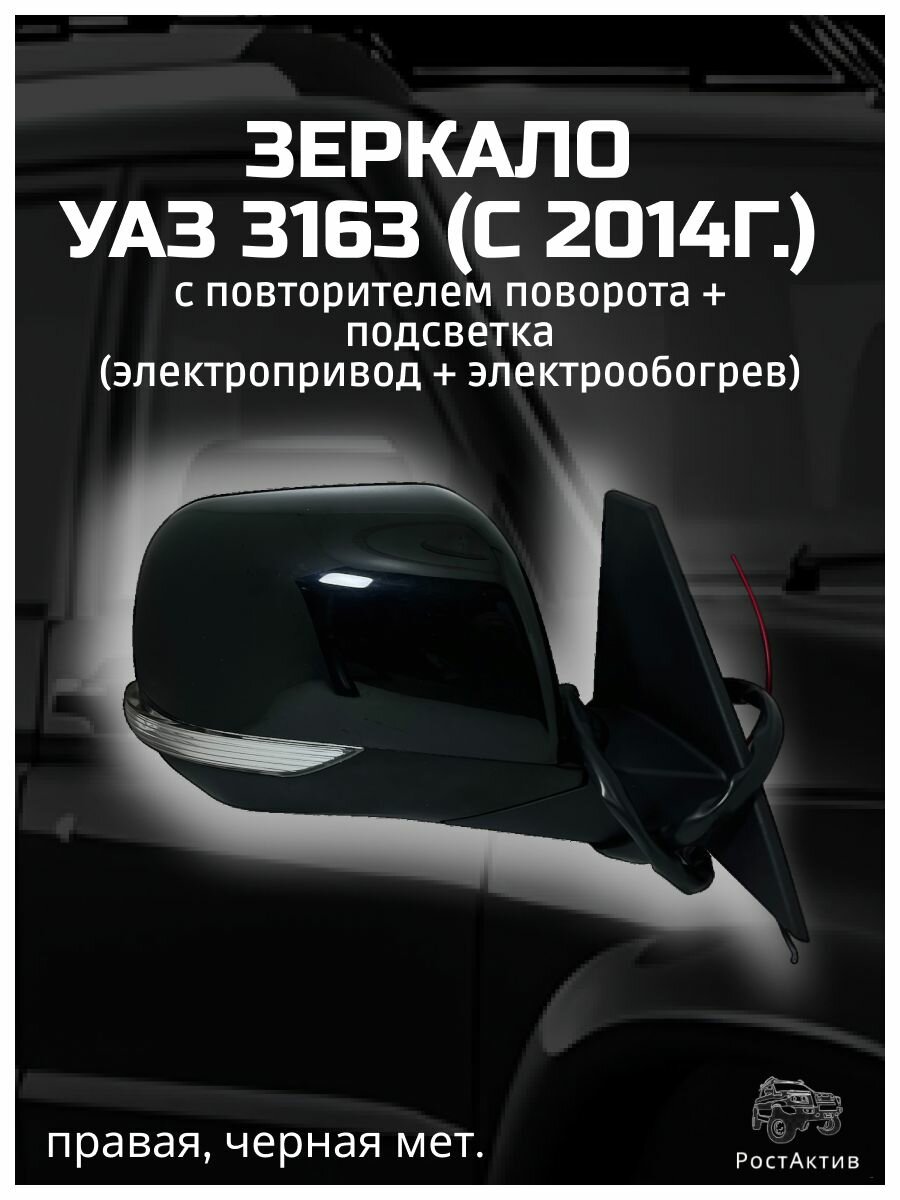 Зеркало 3163 (с 2014 г.) с повторителем поворота + подсветка правое (электропривод + электрообогрев)черн. МЕТ,: сравнение цен, характеристики, фото, актуальное наличие и цены.