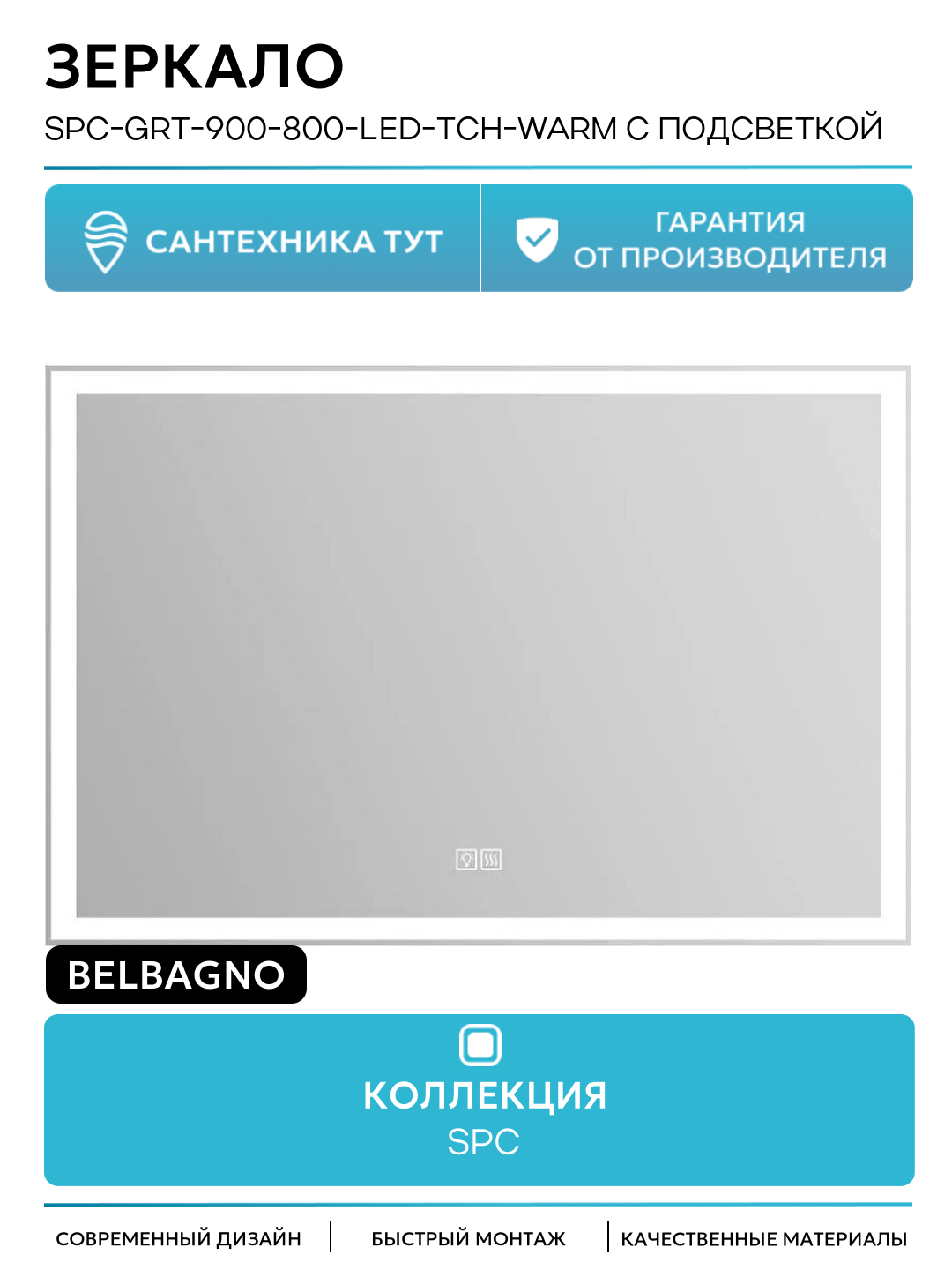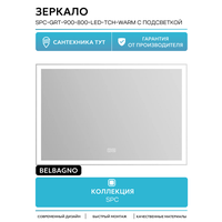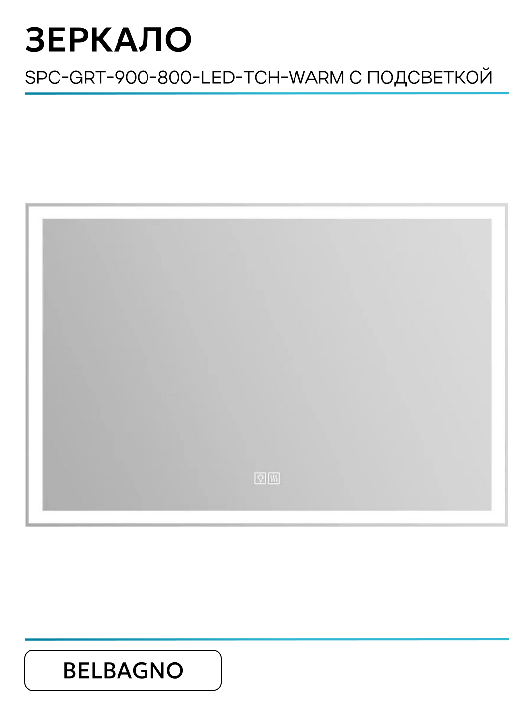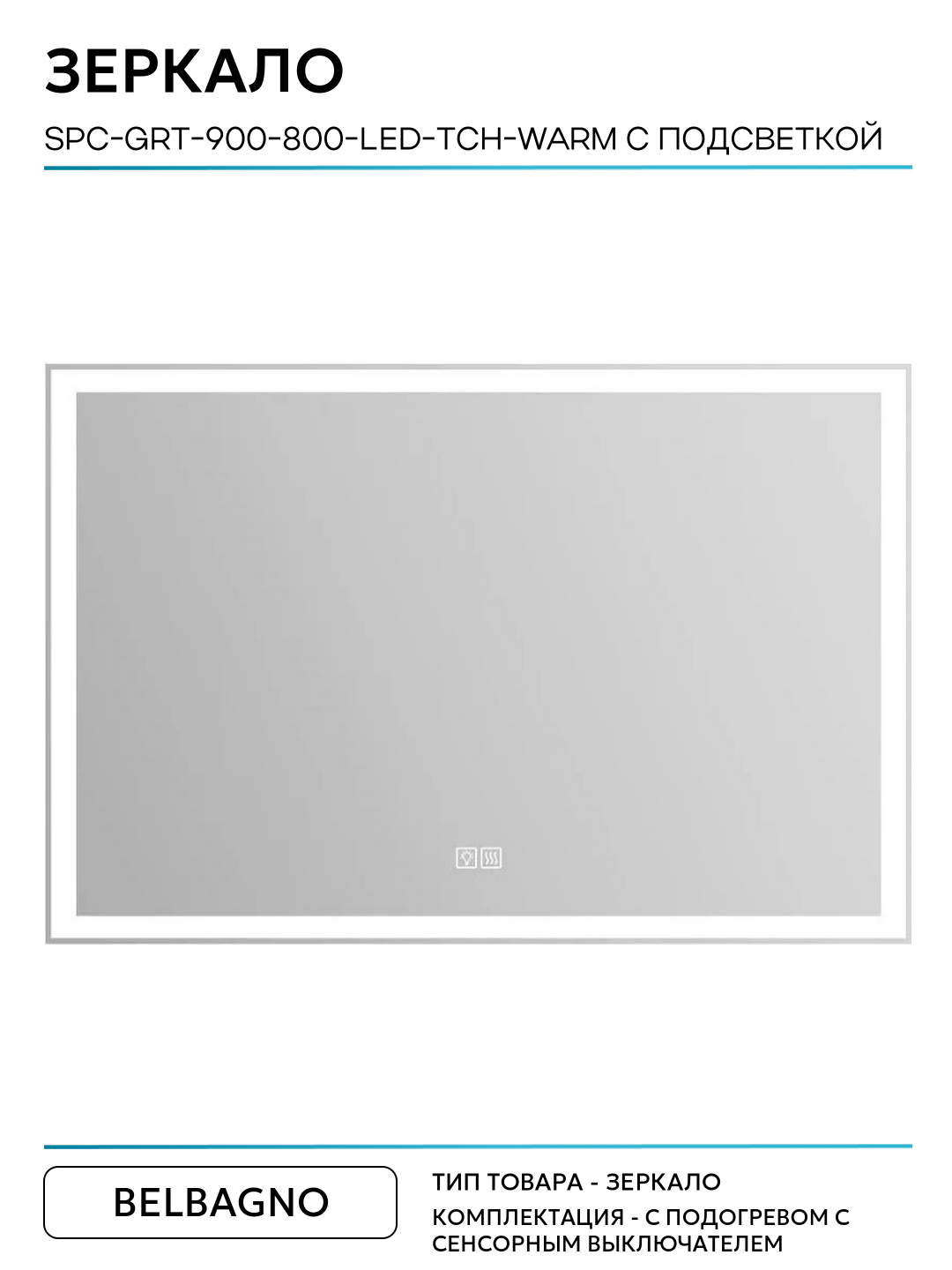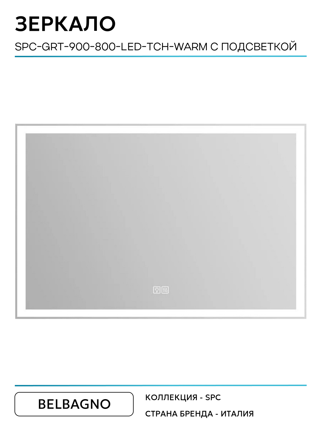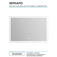 Зеркало BelBagno SPC-GRT-900-800-LED-TCH-WARM с подсветкой с подогревом с сенсорным выключателем Италия: сравнение цен, характеристики, фото, актуальное наличие и цены.