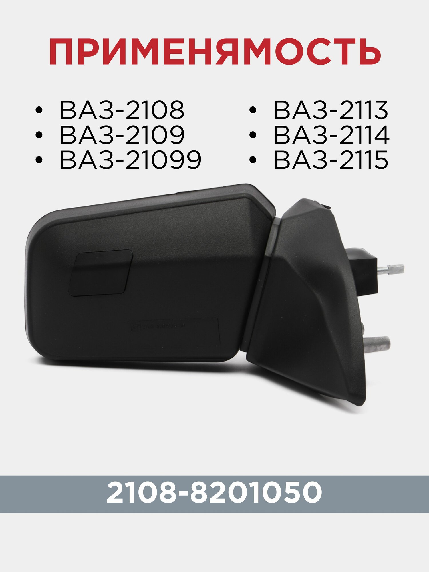 Наружное зеркало заднего вида для автомобилей 2108, 2109, 21099, 2113, 2114, 2115 - идеальный выбор для вашего автомобиля! Особенностью данного зеркала является его металлический кронштейн, который обеспечивает надежное крепление к кузову автомобиля и защищает зеркало от повреждений. Рычаг регулировки позволяет настроить оптимальный угол обзора, учитывая ваши индивидуальные потребности и предпочтения.