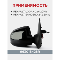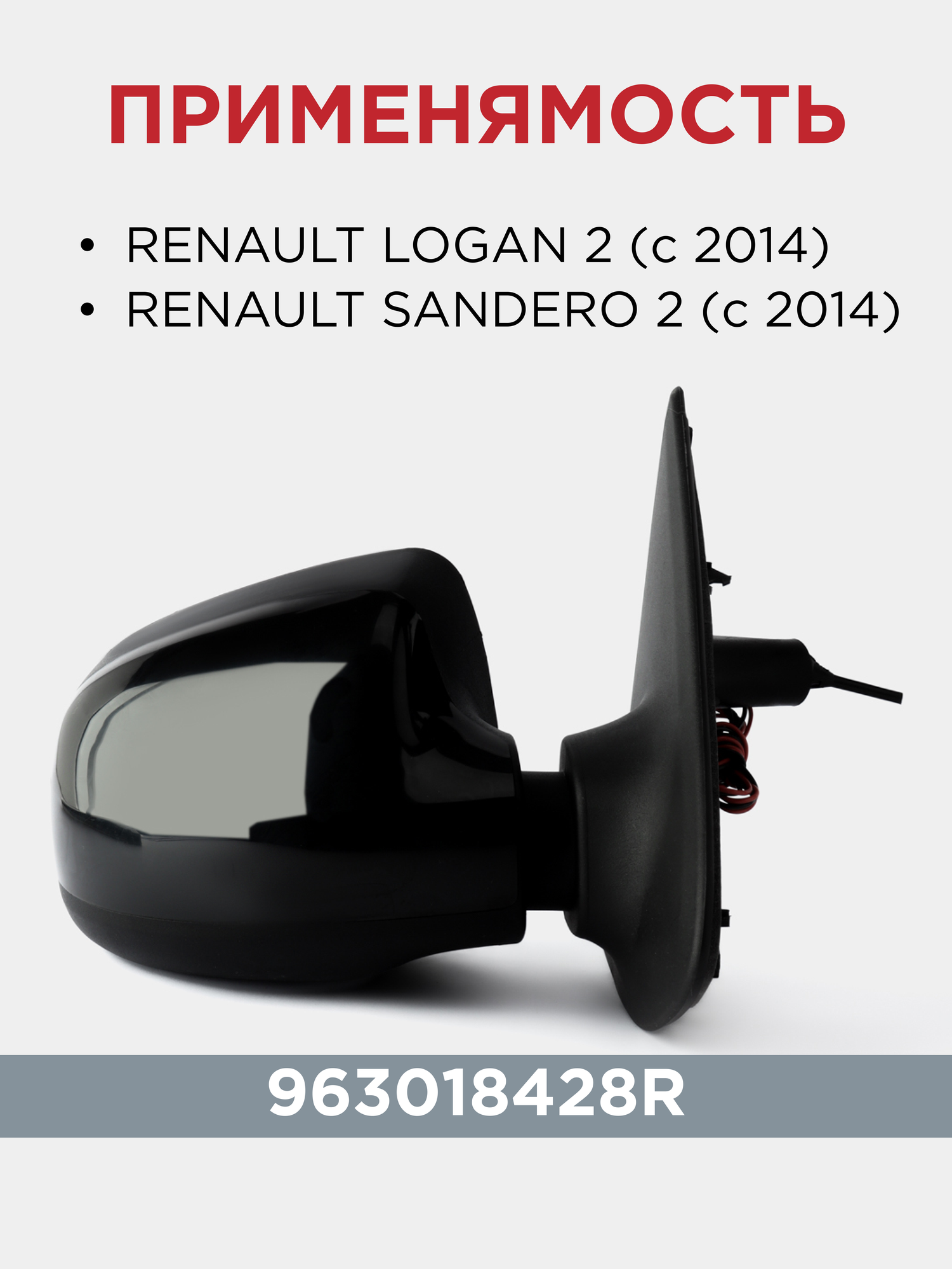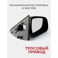 Зеркало боковое правое для RENAULT Logan и Sandero 2 поколения (выпускаются c 2014 года) тросовое с обогревом и накладкой - это качественный аксессуар для вашего автомобиля, который обеспечит вам безопасность и комфорт во время движения.