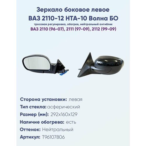 Купить Зеркало боковое левое ВАЗ 2110, 2111, 2112, модель НТА-10 БО «Волна» с тросовым приводом регулировки, с асферическим противоослепляющим отражателем нейтрального. С системой обогрева. с доставкой по всей России. Зеркало боковое левое ВАЗ 2110, 2111, 2112, модель НТА-10 БО «Волна» с тросовым приводом регулировки, с асферическим противоослепляющим отражателем нейтрального. С системой обогрева.: сравнение цен, характеристики, фото, актуальное наличие и цены.