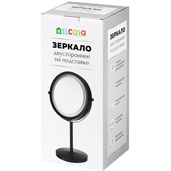 Зеркало EL Casa «Черное» 17.5 см, двустороннее, на подставке, 20,5х13,5х33 см, 5-кратное увеличение, с подсветкой (240599): сравнение цен, характеристики, фото, актуальное наличие и цены.