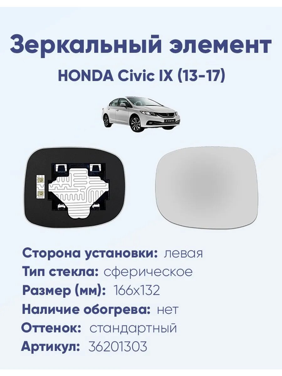 Зеркало HONDA Civic IX (13-17) 36201303: сравнение цен, характеристики, фото, актуальное наличие и цены.