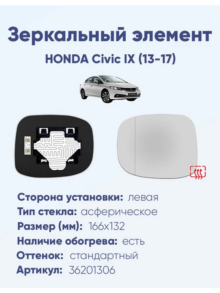 Зеркало HONDA Civic IX (13-17) 36201306: сравнение цен, характеристики, фото, актуальное наличие и цены.