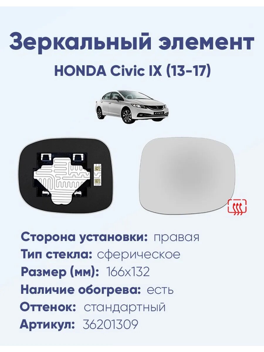 Зеркало HONDA Civic IX (13-17) 36201309: сравнение цен, характеристики, фото, актуальное наличие и цены.