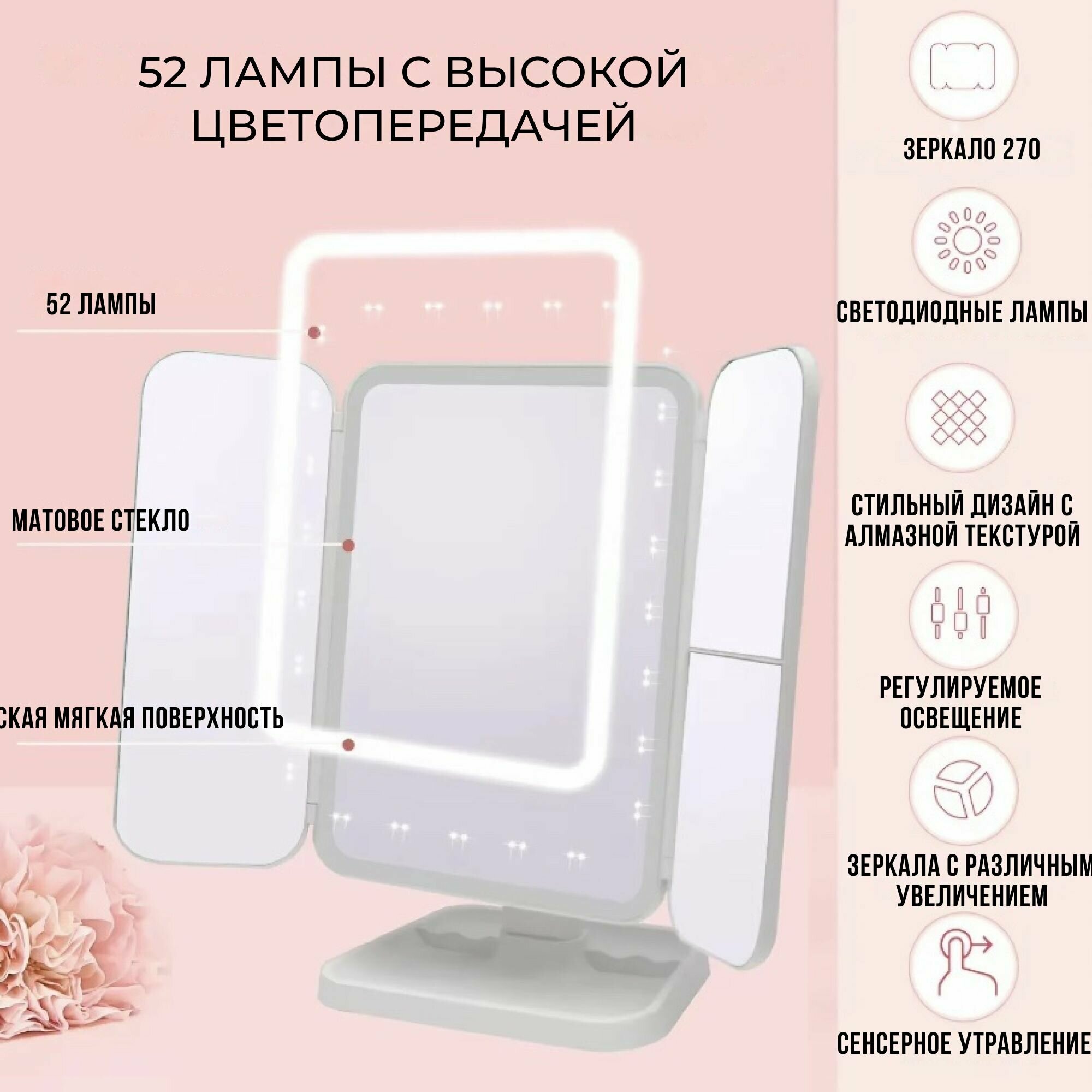 Зеркало косметическое настольное с LED подсветкой большое, с увеличением 10х, складывающееся, для макияжа: сравнение цен, характеристики, фото, актуальное наличие и цены.