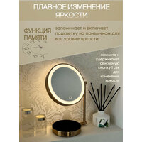 Особенностью зеркала является подсветка, которая включается и выключается с помощью сенсорного выключателя. Вы можете выбрать один из трех цветов подсветки - холодный, нейтральный или теплый, а также настроить яркость освещения по своему усмотрению. Зеркало выполнено в металлической раме и оснащено удобной полочкой для хранения аксессуаров. Основание зеркала оснащено противоскользящим покрытием, что обеспечивает хорошую устойчивость.