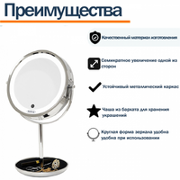 батарейки в комплекте, поворотное, регулировка по высоте, с увеличением, сенсорный выключатель