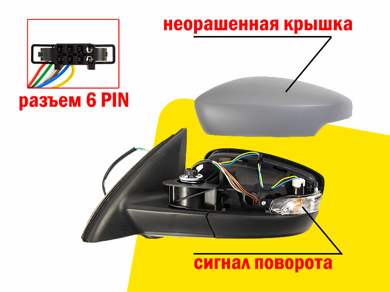 Зеркало левое для Skoda Rapid с 2017 по 2020 гг и Volkswagen Polo с 2020 по 2022 гг разъем 6 PIN: сравнение цен, характеристики, фото, актуальное наличие и цены.