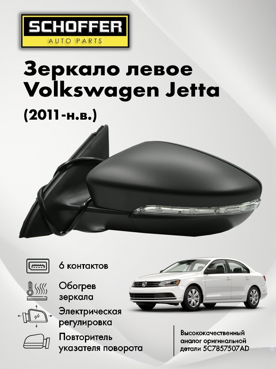 Зеркало левое для Volkswagen Jetta 11-/Фольксваген Джетта 6 конт./поворот/регул-ка/обогрев, SHF-13041: сравнение цен, характеристики, фото, актуальное наличие и цены.