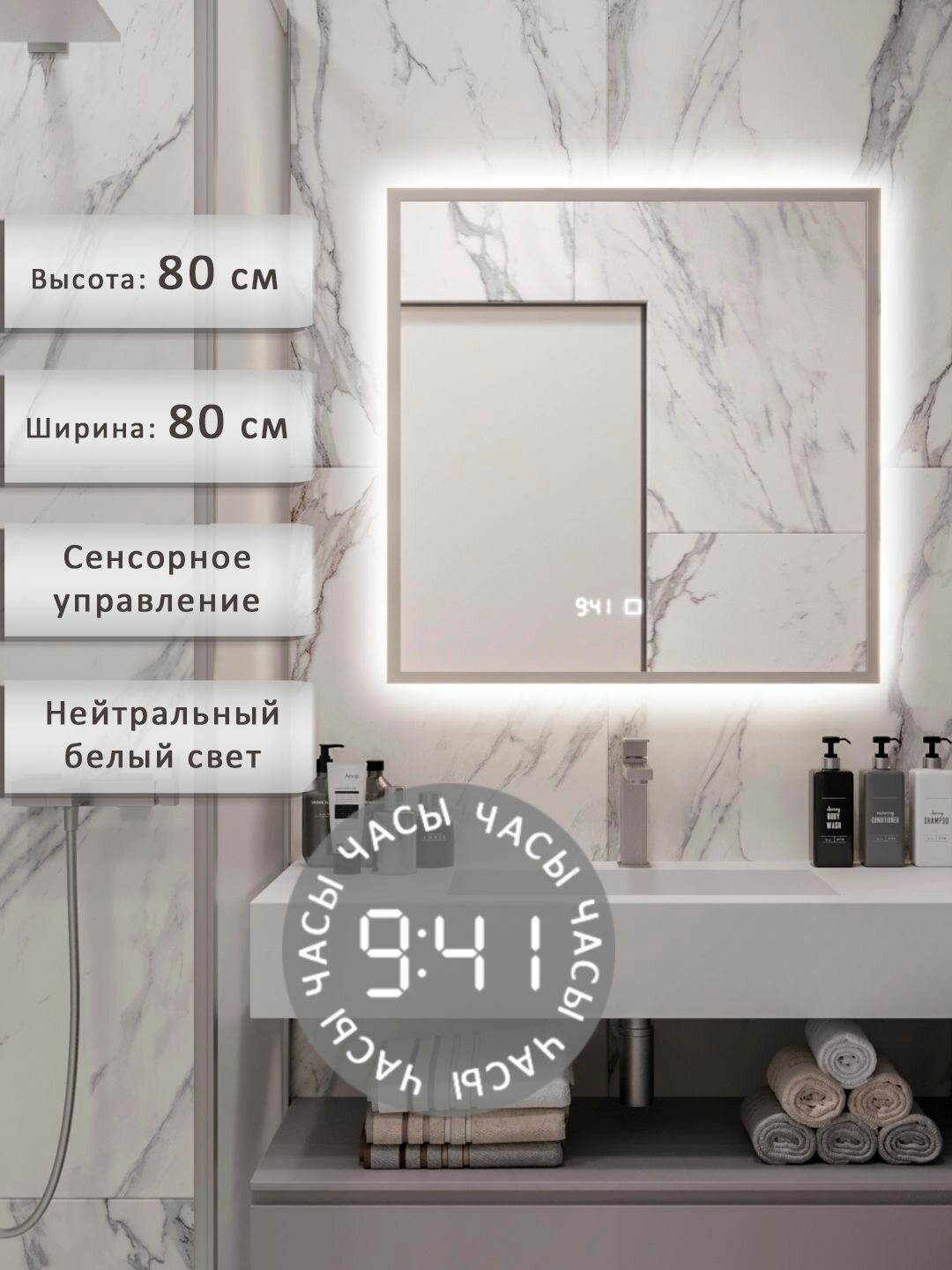 Купить Зеркало настенное Alias Квартал 80*80 в серебряной алюминиевой раме с нейтральной LED — подсветкой и часами с доставкой по всей России. Зеркало настенное Alias Квартал 80*80 в серебряной алюминиевой раме с нейтральной LED — подсветкой и часами: сравнение цен, характеристики, фото, актуальное наличие и цены.