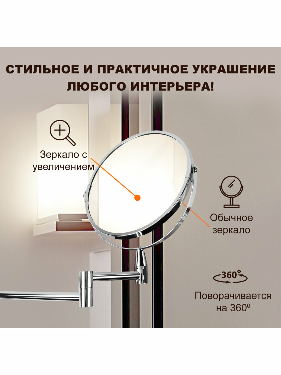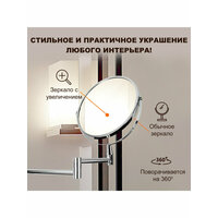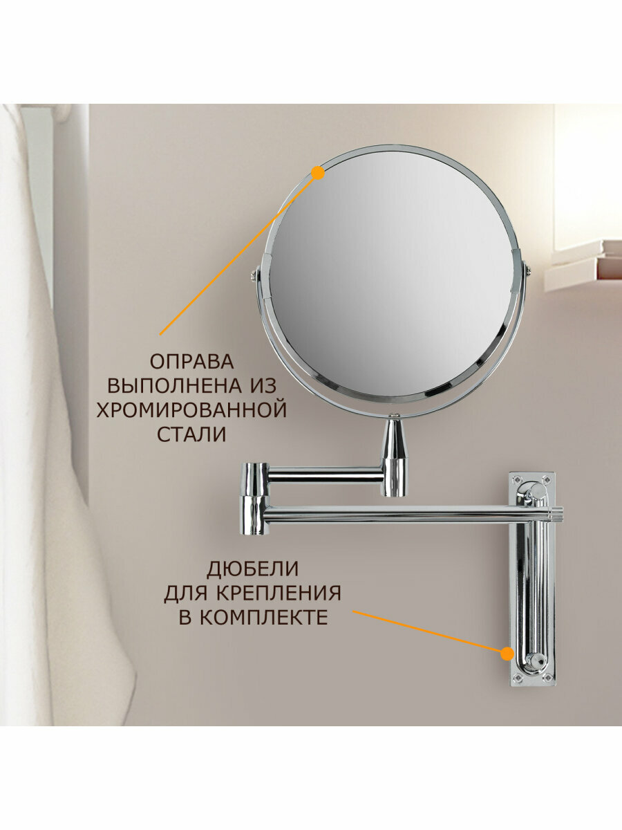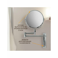 Элегантная оправа из нержавеющей стали и хромированное покрытие обеспечивают стильный внешний вид и долговечность. Это зеркало для макияжа идеально подходит для размещения на стене в ванной или прихожей, создавая комфортные условия для ежедневных процедур.